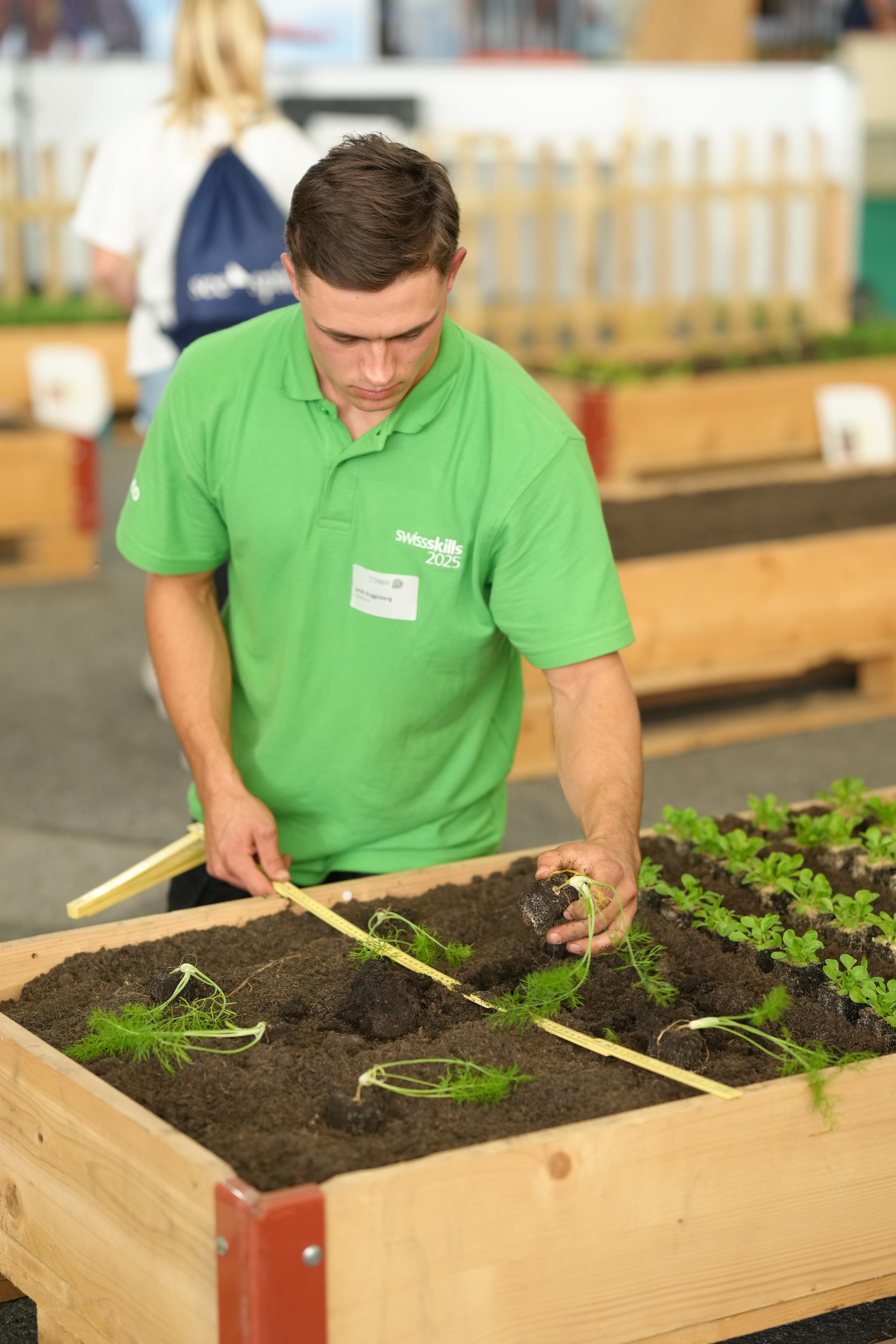 Der Wettbewerb für Gemüsegärtner/innen bestand aus zwei Teilen: Teil A wurde bereits im August auf dem Feld absolviert, Teil B fand während den SwissSkills in Bern statt. Die Teilnehmenden bearbeiteten Posten wie das Pikieren in der Anzuchtkiste, das Erkennen von Pflanzen, das Gestalten eines Marktstands, das Bepflanzen eines Beets sowie die Bedienung einer Lauchpflanzmaschine und Aufgaben zur Mechanisierung mit dem Traktor. Dabei waren Eigenschaften wie Fingerspitzengefühl, fundiertes Fachwissen, arbeiten mit hoher Geschwindigkeit, Arbeitsqualität unter Druck sowie Arbeitssicherheit gefragt.