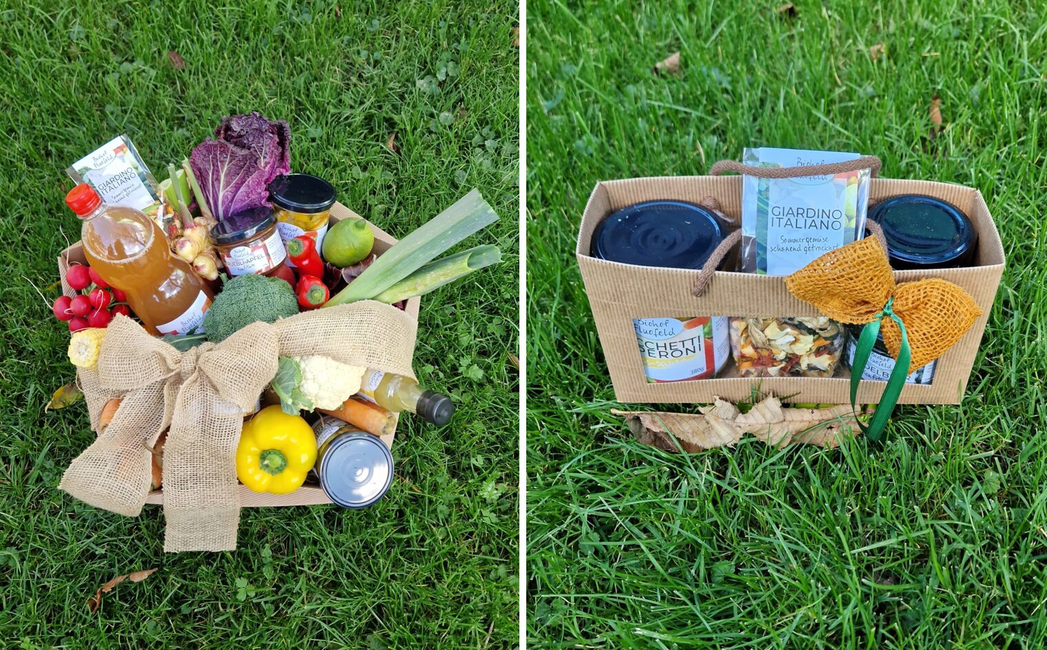 Mit Liebe zum Detail und saisonal dekoriert verpacken wir unsere Produkte zu verschiedenen Geschenken. Ein Konfi-Trio, ein Pasta-Set oder eine freie Zusammenstellung frischer und verarbeiteter Produkte, alles ist möglich.